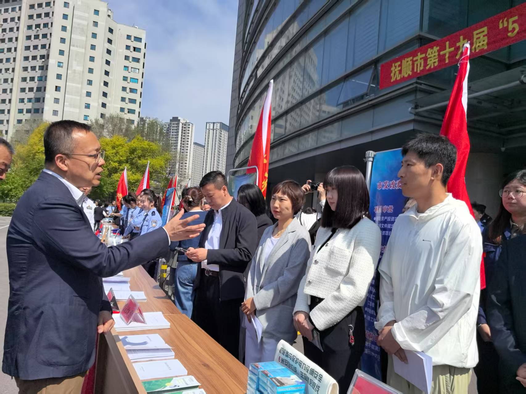 按照市政府统一部署,我委参加抚顺市第十九届“5•15政务公开日”活动, 相关科室人员将人民群众关注关心的价格收费、新能源汽车充电桩安装等政策汇集成册现场发放。