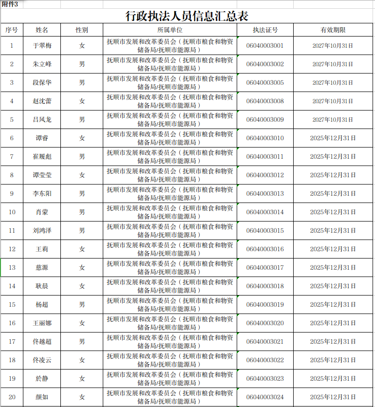 行政执法人员信息汇总表(2025年)
