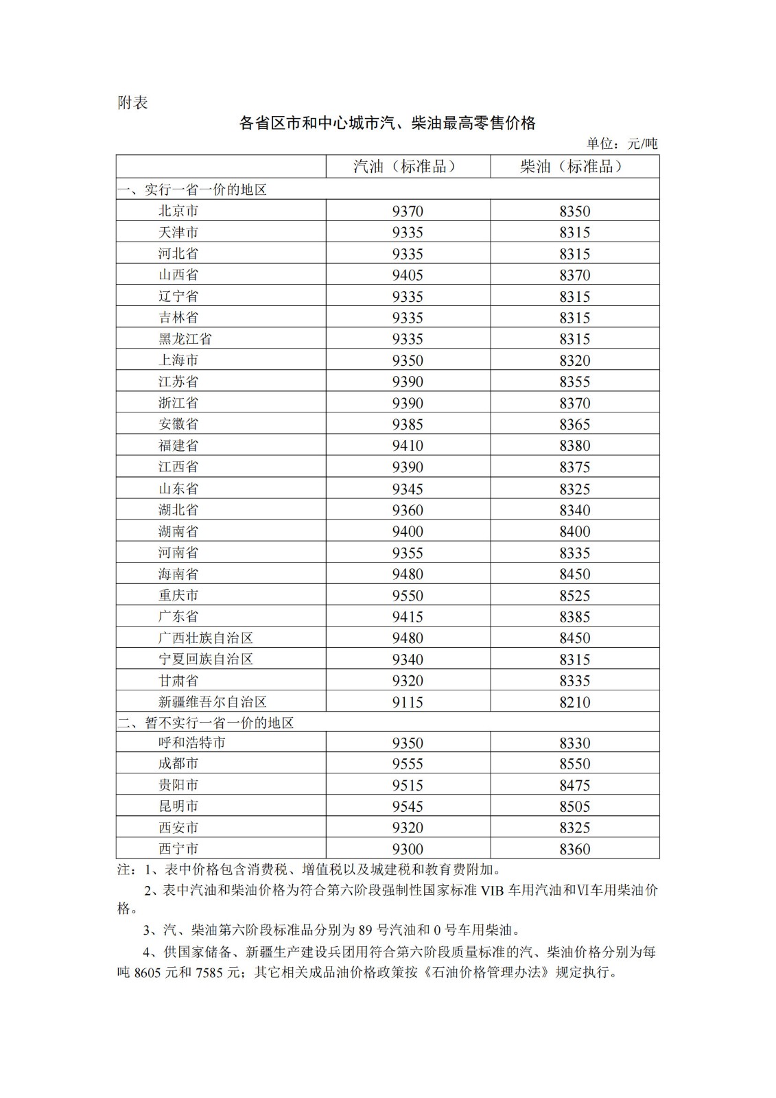 据国家发改委网站消息,根据近期国际市场油价变化情况,按照现行成品油价格形成机制,自2025年3月5日24时起,国内汽、柴油价格(标准品,下同)每吨分别降低135元和130元。调整后,各省(区、市)和中心城市汽、柴油最高零售价格见附表。