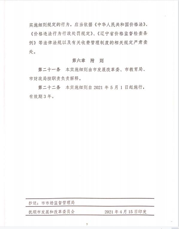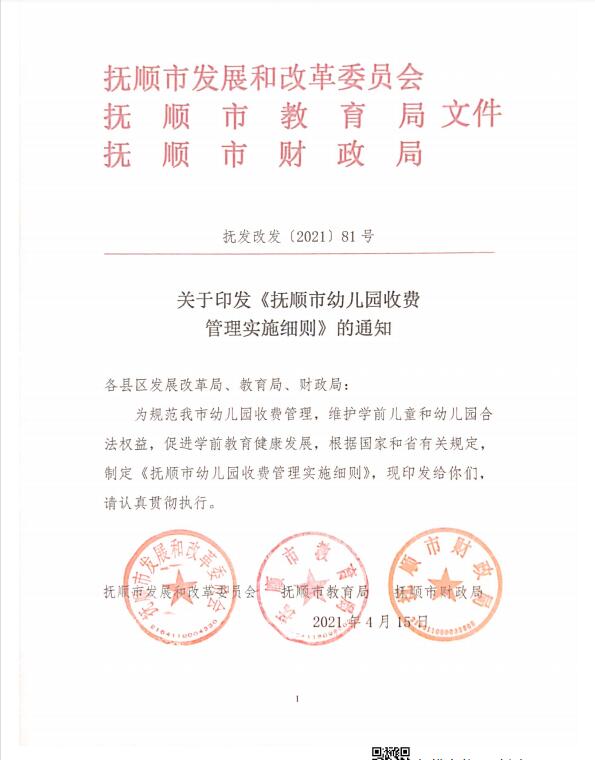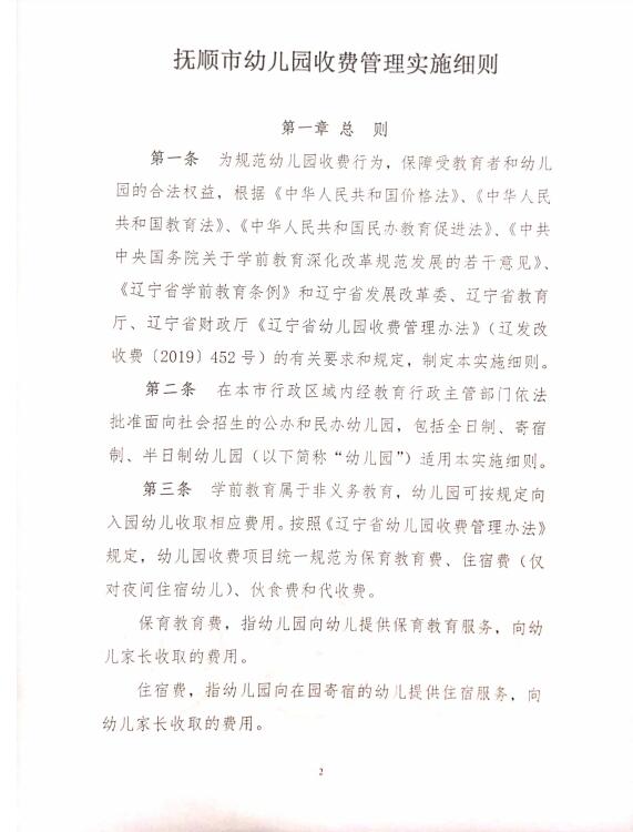 关于印发《抚顺市幼儿园收费管理实施细则》的通知